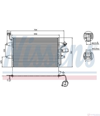 Радиатор Климатик За Автомобил Марка Seat Модел Cordoba Vario Модификация 1.9 Sdi Кубатура На Двигателя: 1896 Ccm, Конски Сили: 68 к.с./Hp, Код На Двигател: Agp, Aqm, Година На Производство: 06/1999-12/2002, Размери На Питата На Радиатора: 550 X 360 X 16 Mm, Материал: Алуминий - Nissens Кат. № 94574