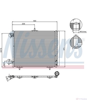 Радиатор Климатик За Автомобил Марка Citroen Модел C2 Модификация 1.6 Vts Кубатура На Двигателя: 1587 Ccm, Конски Сили: 122 К.С./Hp, Код На Двигател: Nfs (Tu5Jp4S), Година На Производство: 09/2003-, Размери На Питата На Радиатора: 460 X 371 X 16 Mm, Материал: Алуминий, Допълващ Артикул /Допълваща Информация 2: С Изсушител, За Oe-Номер: 6455.Et - Nissens Кат. № 94595