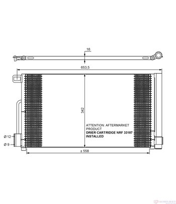 Радиатор Климатик За Автомобили Марка Citroen Модел Nemo Модификация 1.2 HDi 75 Вид Купе: Кутия, Кубатура На Двигателя: 1248 Ccm, Конски Сили: 75 к.с./Hp, Код На Двигател: , Година На Производство: 02/2008-, Размери на Питата на Радиатора: 600 X 355 X 16 mm, Nissens Кат. № 94973