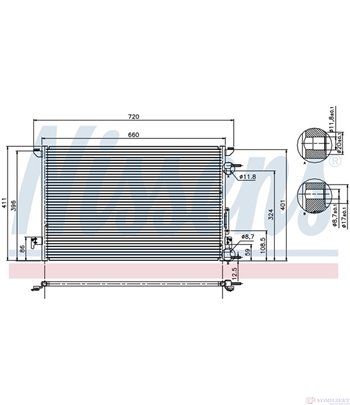 Радиатор Климатик За Автомобил Марка Fiat Модел Croma Модификация 2.2 16V Кубатура На Двигателя: 2198 Ccm, Конски Сили: 147 к.с./Hp, Код На Двигател: 194 A1.000, Година На Производство: 06/2005-, Размери На Питата На Радиатора: 670 X 318 X 0 Mm, Материал: Алуминий - Nissens Кат. № 94597